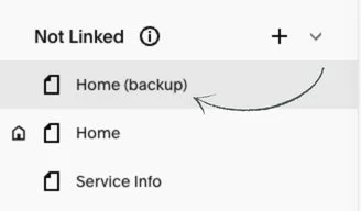This creates an exact copy of the Homepage. The new page title ends with "(Copy)" and will be located in the Not linked section.