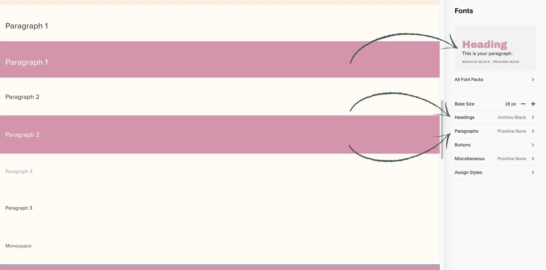 ⭐️ It will automatically update all of the fonts on your website to match that style: