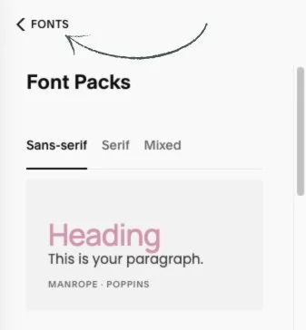 Then, Click on Fonts in the upper right-hand corner to return to the Font menu.