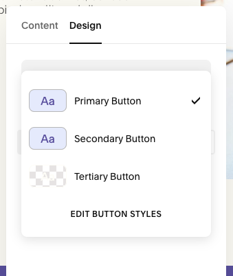 • You will find options to select the Button Style such as: Primary, Secondary, and Tertiary.