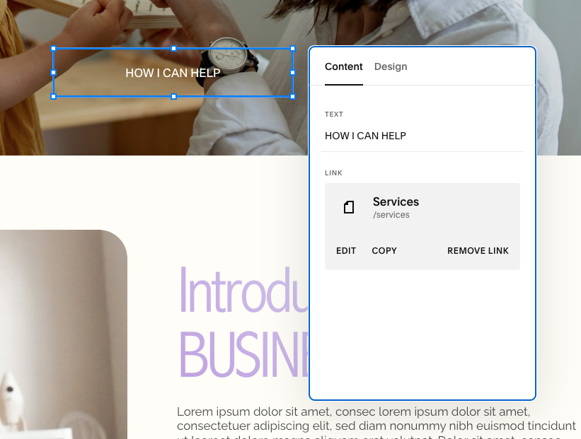 Select the Button Block and you’ll see a little menu pop up. That will have a pencil icon.