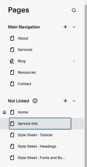 • You will see the pages listed in the Main Navigation, and then the pages on the Not Linked section.