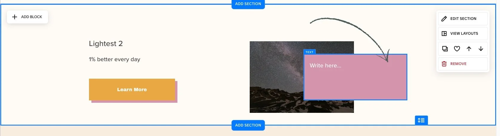 • Changing a section's Color Theme overrides all text colors and resets the text to match the color settings for that Theme.