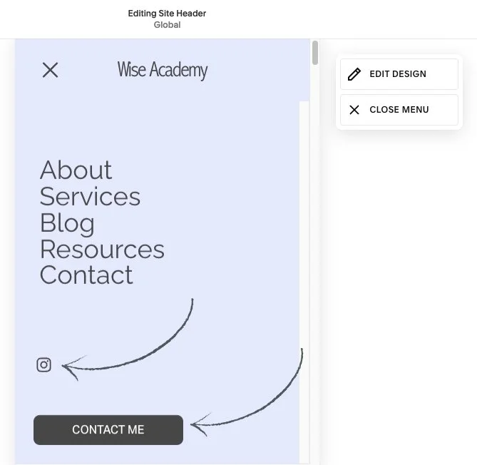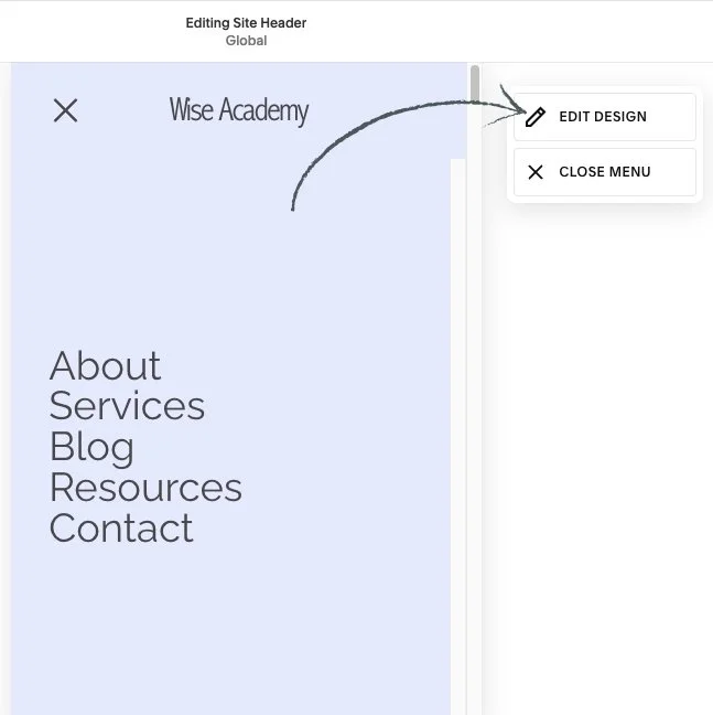 4. Click Edit Design, and there is where you can customize the layout of your Mobile menu.