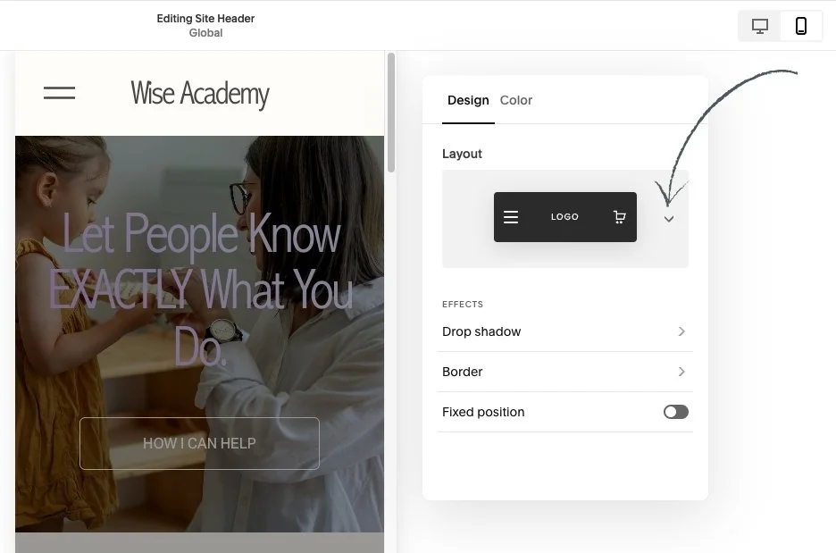 ⭐️ Remember that these two things (little Menu icon and Logo) are not independent to just mobile, so if you make any changes to these it will change on both mobile and desktop.
