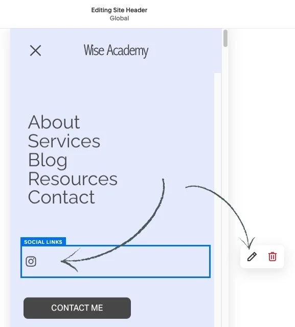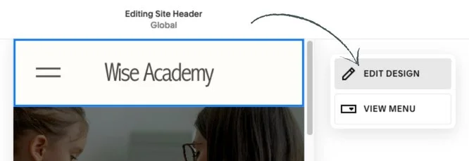 Hover over the very top of your Mobile screen and click Edit Site Header.
