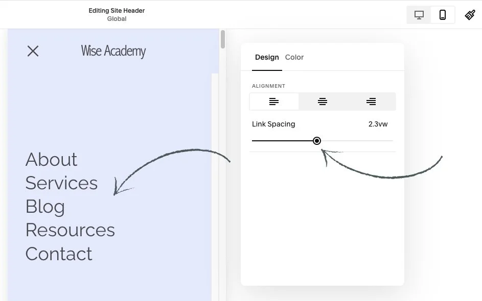 💡 If you want to customize your mobile menu further by adjusting the font of your menu links, it's important to note that this menu font uses whatever you have already set as your paragraph font in your site Styles. So any changes that you make is going to apply sitewide.