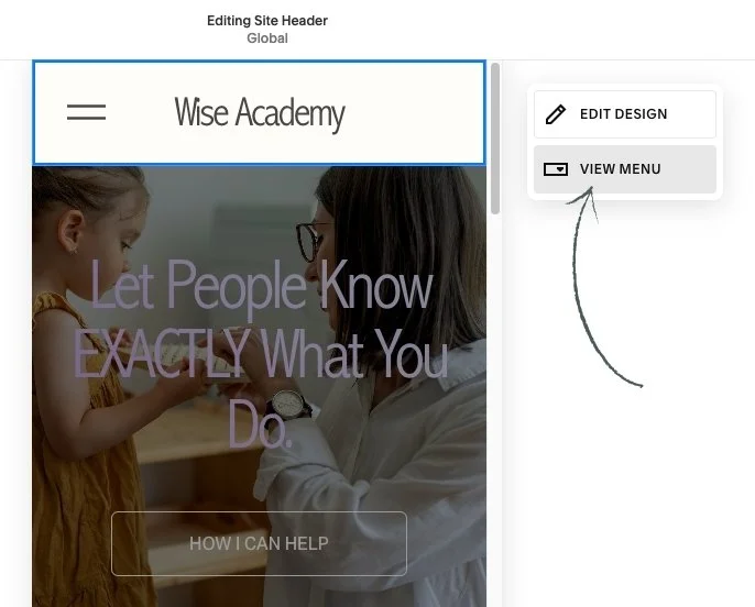 Click into where it says View Menu. This is going to show you what your actual Mobile menu is going to look like.