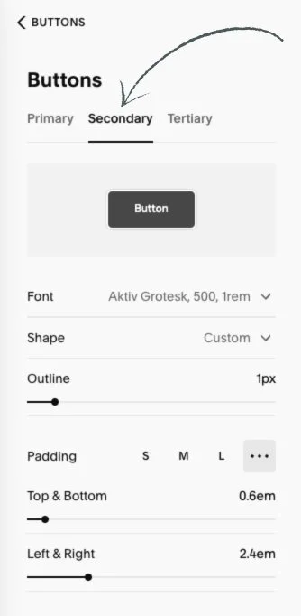 ⭐️ As a reminder: to adjust these settings you can just head into your Site Styles which is the paint brush icon in the very top right of your screen and then click into Buttons.