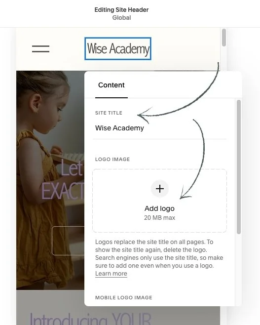 You can go ahead and do that there and just remember that it's always still important to include a Site Title if you are uploading a unique logo, because it helps boost your SEO.