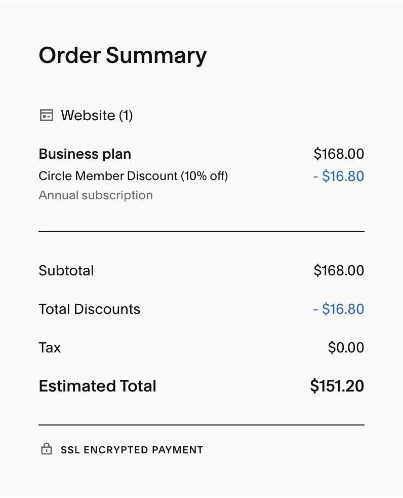 🔸 Remember, all Squarespace’s subscriptions come with one free year of your custom domain if you purchase an annual plan. Past that first year, your domain is probably going to set you back around $20 to $40 dollars.