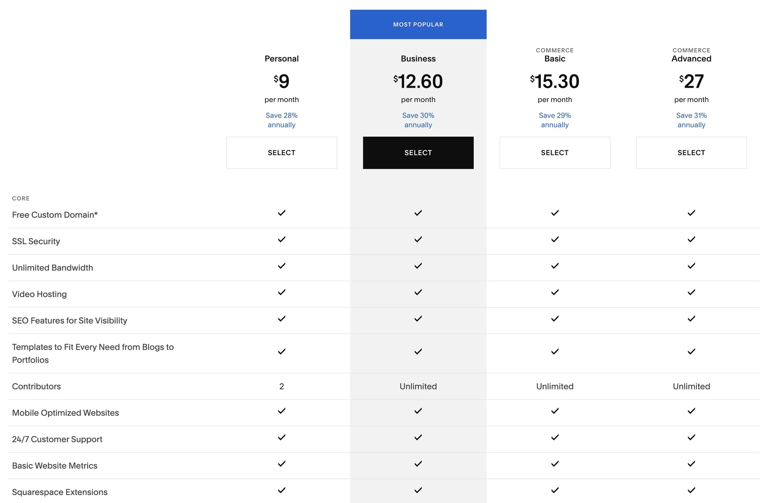⭐️ The right Squarespace plan for your small business will depend on what exactly you need and what features you want included in your website. View Squarespace Plans.